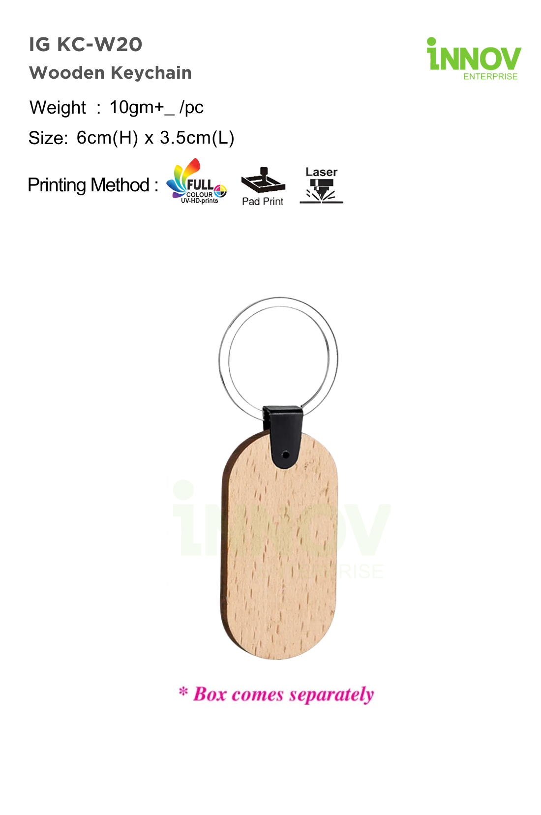 The IG KC-W20 Wooden Keychain is a sleek and practical Custom Wooden Keychain for Gifts, designed for business events, office use, and corporate gifting. Crafted from natural wood with a smooth oval profile and visible grain, it delivers a warm, understated look that feels more refined than plastic alternatives. The lightweight construction makes it comfortable for daily carry, while the gently rounded surface provides a clean area for logos—helping branding remain clear and professional.