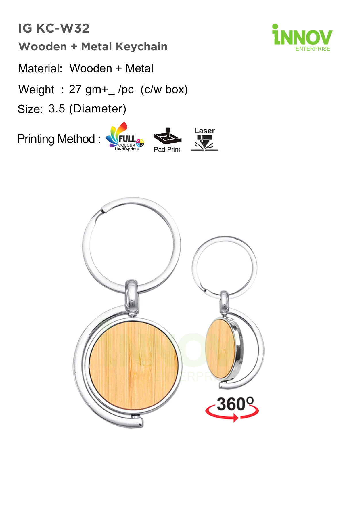 The IG KC-W32 Wooden + Metal Keychain is a compact option for businesses sourcing Custom Keyrings Wholesale for branding, promotions, and everyday corporate use. Supplied by Innov Enterprise, it features a circular wooden insert with a smooth metal frame for a modern, natural look.