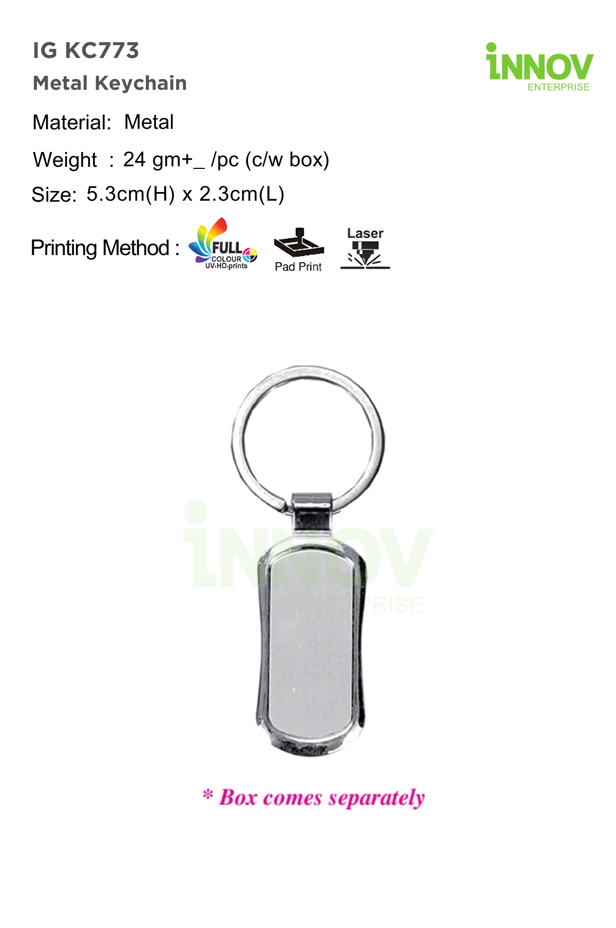 The IG KC773 Metal Keychain is a sleek Metal Keychain with Name designed for durable everyday use and professional gifting. Supplied by Innov Enterprise, it features a smooth silver-look metal finish in a compact, streamlined shape.