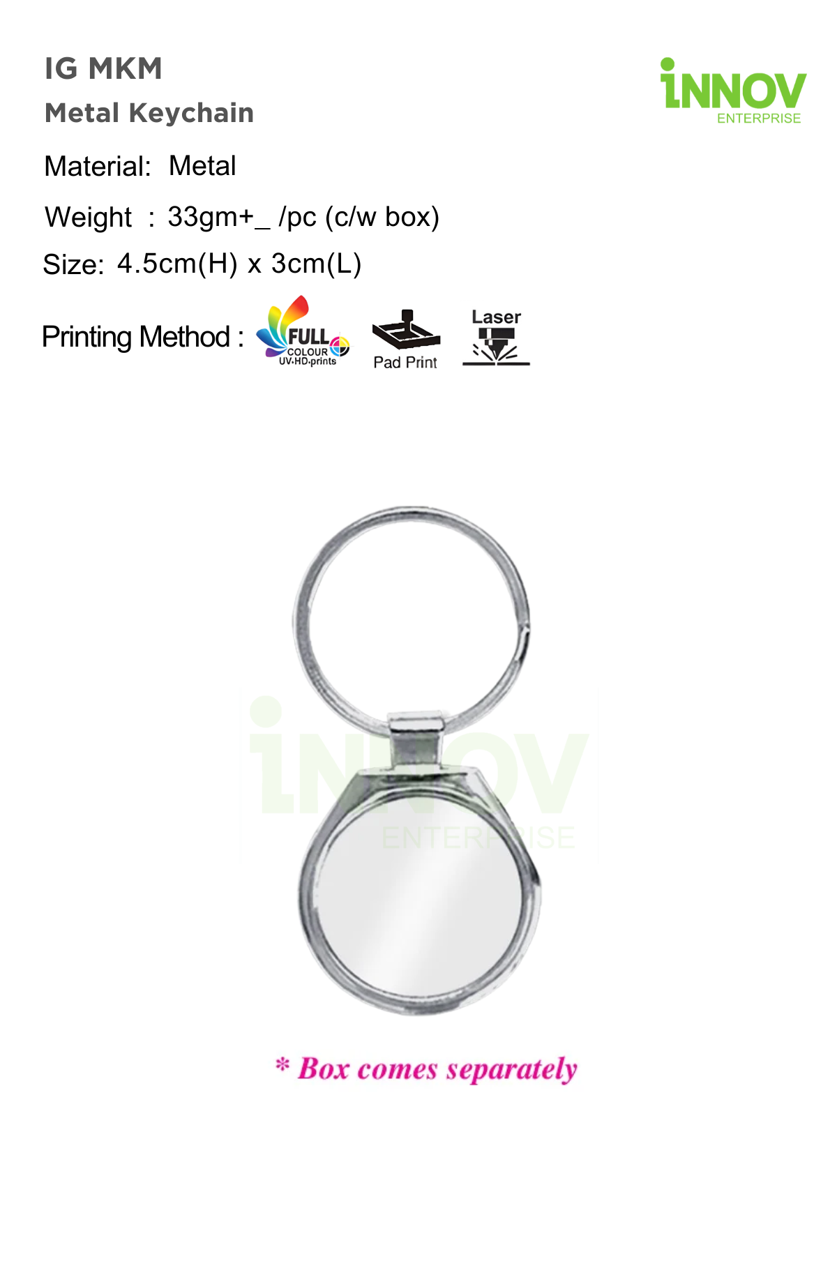 The IG MKM Metal Keychain is a compact Custom Metal Key Holder for corporate promotions, office use, and everyday carry. Offered by Innov Enterprise, it features a polished round silver metal face for a timeless, professional look and clear branding.