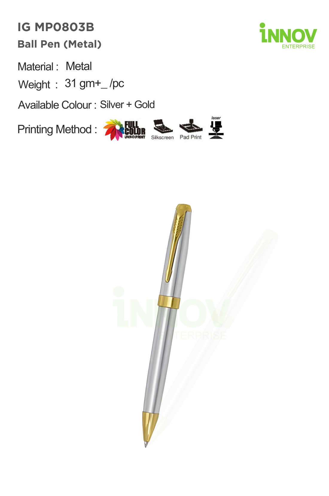 Innov Enterprise offers professional branding services for the IG MP0803B Metal Ball Pen: