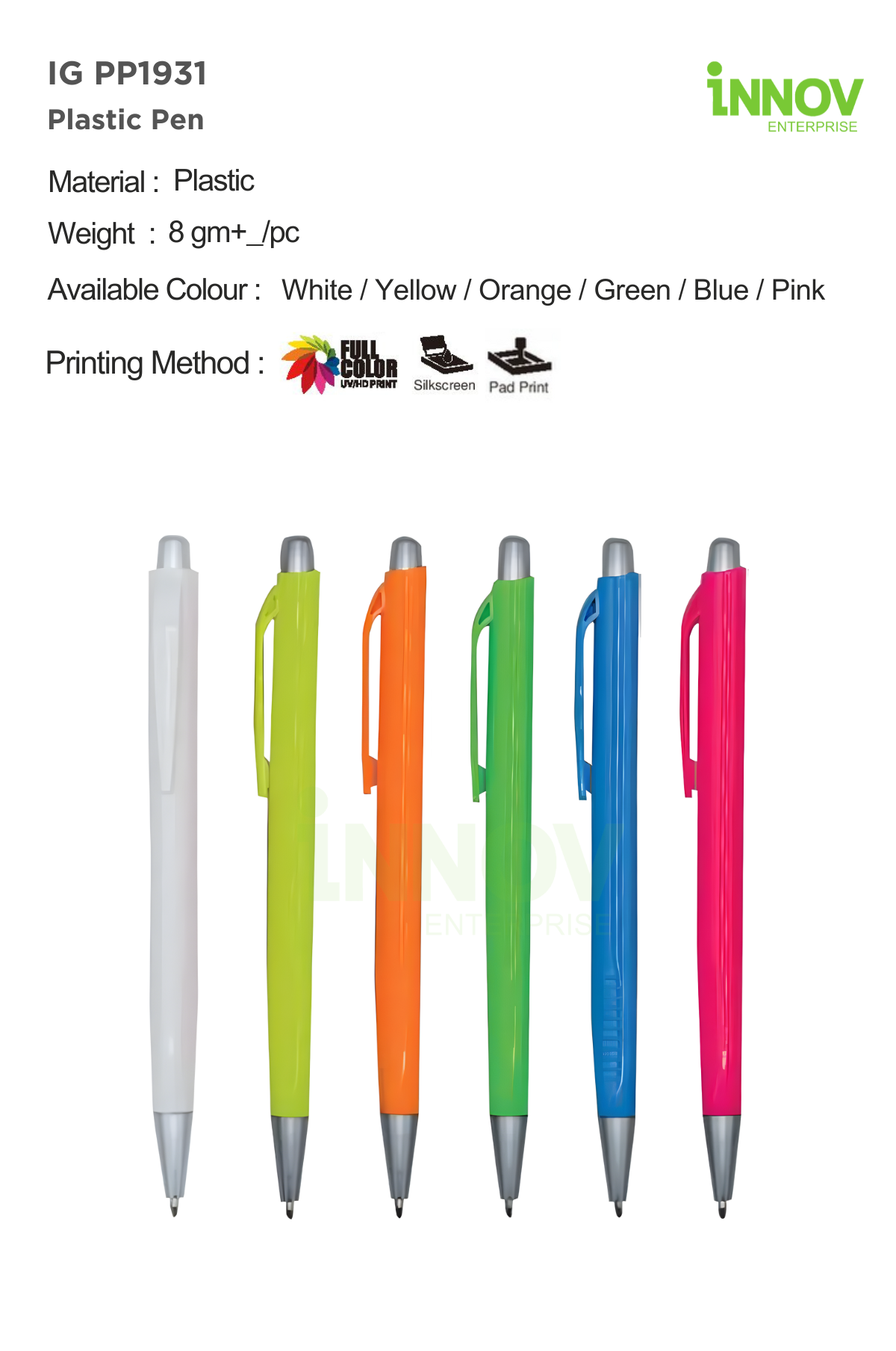 Innov Enterprise provides dependable branding solutions suitable for plastic pens, including: