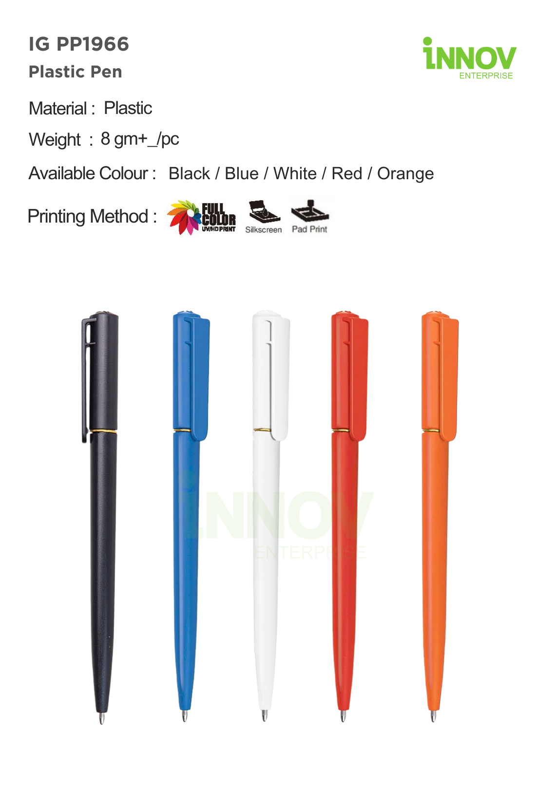 Innov Enterprise provides comprehensive branding solutions suitable for plastic pens, including: