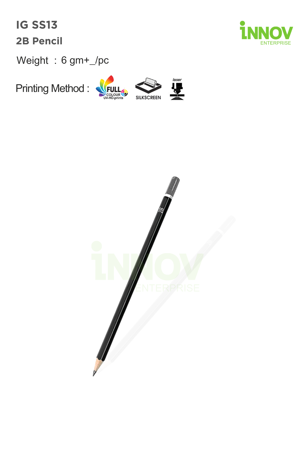 Weighing approximately ±6 g per piece, this lightweight pencil is ideal for bulk distribution in student packs, onboarding kits, training programmes, and corporate giveaways. Innov Enterprise offers professional customisation to transform the IG SS13 into a practical Customised Pencil that supports long-term brand exposure through everyday use.