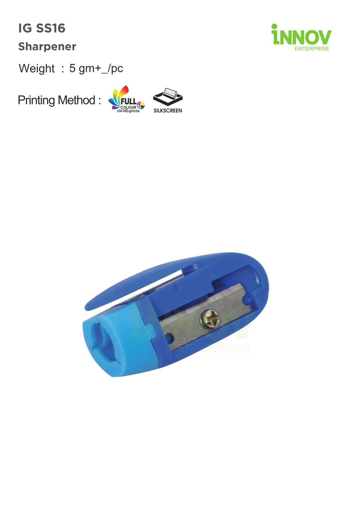Weighing approximately ±5 g per piece, this Customised Sharpener is ideal for bulk distribution in student packs, onboarding kits, corporate giveaways, and educational programmes. Innov Enterprise offers professional customisation to transform the IG SS16 into a practical Customised Sharpener that supports long-term brand visibility through frequent, everyday use.