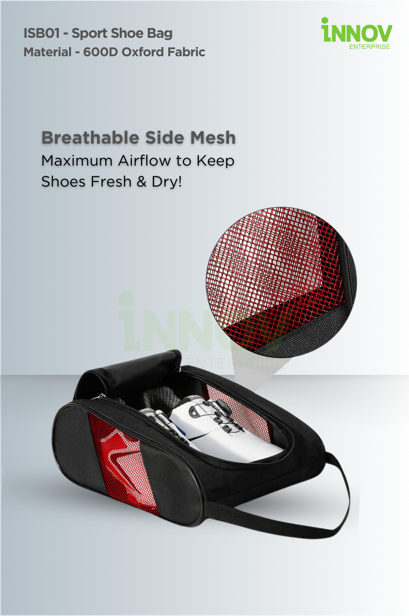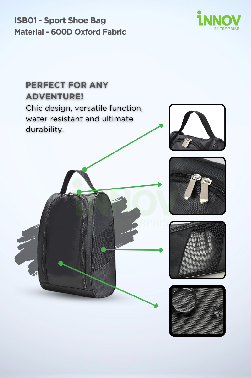 The ISB01 – Sport Shoe Bag is the ultimate solution for keeping your footwear fresh, dry, and organised—whether you’re at the gym, on the road, or simply storing at home. Built with water-resistant 600D Oxford fabric, it shields your shoes from moisture, while the breathable mesh side panels ensure ventilation to combat odors.