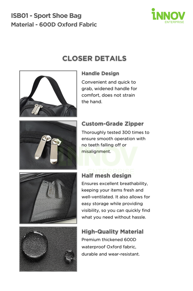 At Innov Enterprise, we offer premium branding solutions to elevate your Breathable Shoe Bag with a polished, professional finish.