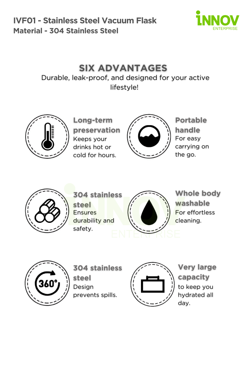 Upgrade your hydration experience with the IVF01 – Stainless Steel Vacuum Flask—a perfect blend of functionality, style, and sustainability. Whether for corporate branding, gifting, or personal use, this thermos is an ideal promotional product. Order now or contact us for bulk inquiries and customization options!