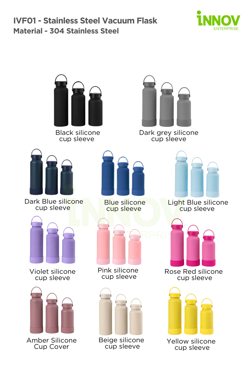 With 11 stylish colour variations, silicone cup sleeves, this flask offers a sleek and modern look to complement any lifestyle. Its leak-proof and ergonomic design ensures mess-free portability, making it perfect for corporate branding, promotional gifts, or personal customization. Whether for corporate professionals needing a reliable tumbler, fitness enthusiasts staying hydrated, travelers on the go, or eco-conscious users seeking a sustainable alternative to disposable bottles, the IVF01 – Stainless Steel Vacuum Flask is the ideal functional and stylish hydration solution.