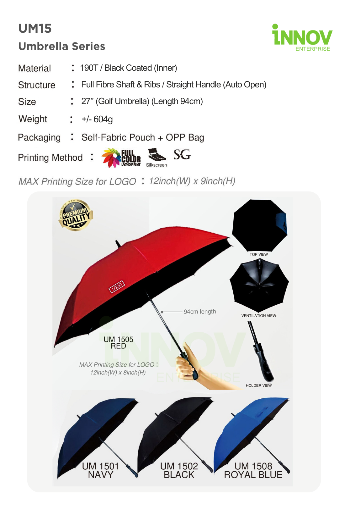 At Innov Enterprise, we offer reliable branding solutions for your Auto Open Golf Umbrella: