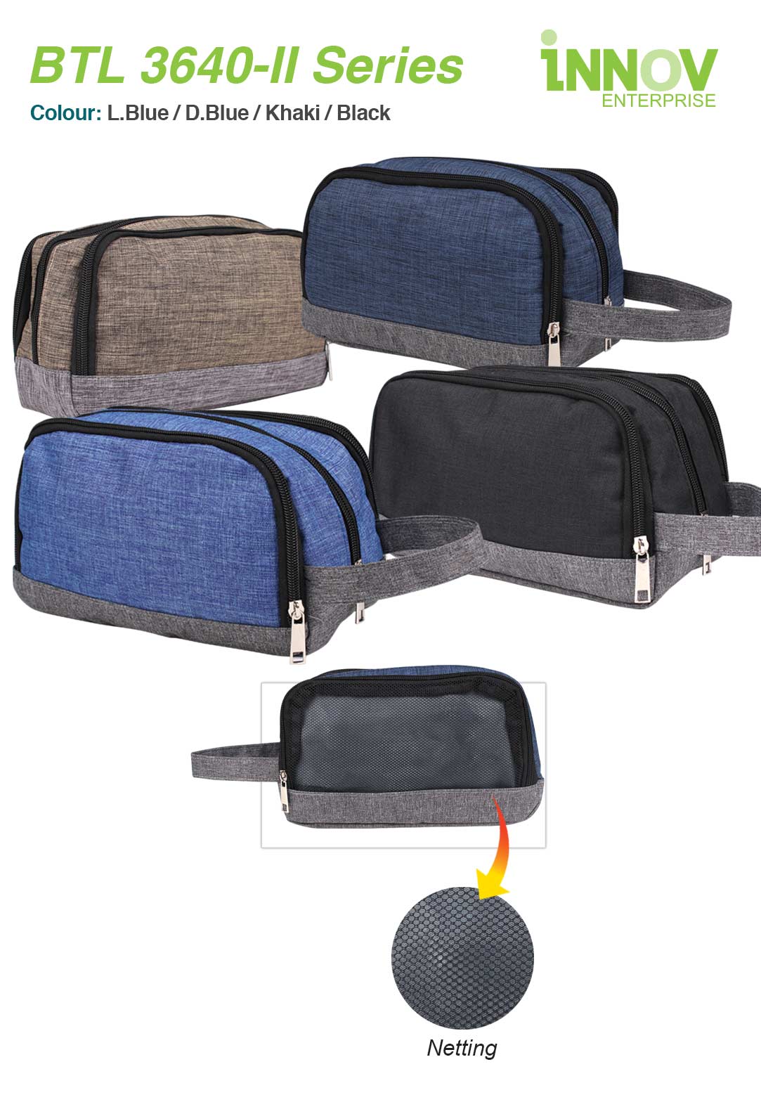 • Colour: L.Blue / D.Blue / Khaki / Black
