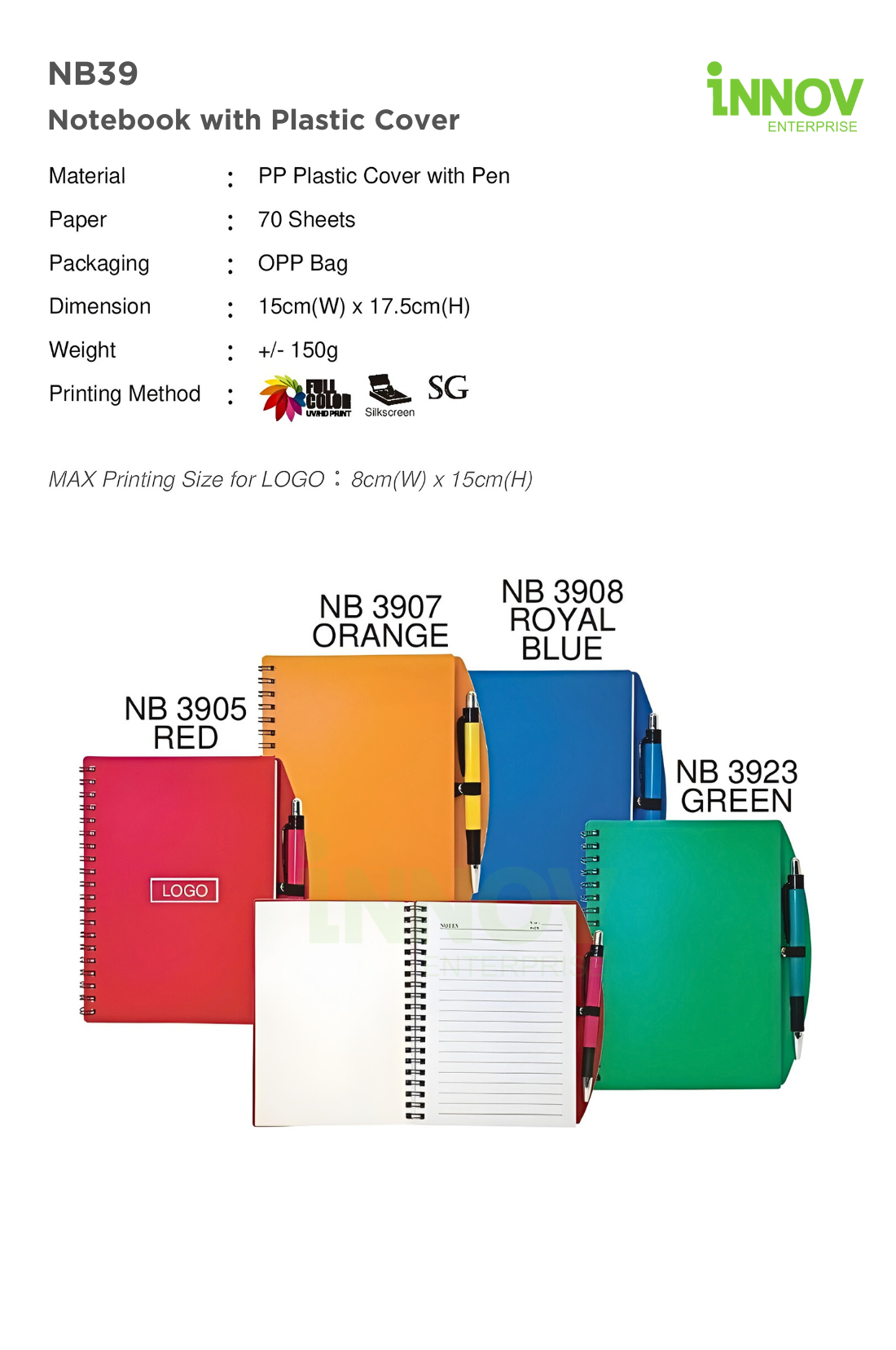 At Innov Enterprise, we provide high-quality branding for your NB39 Notebook with Plastic Cover: