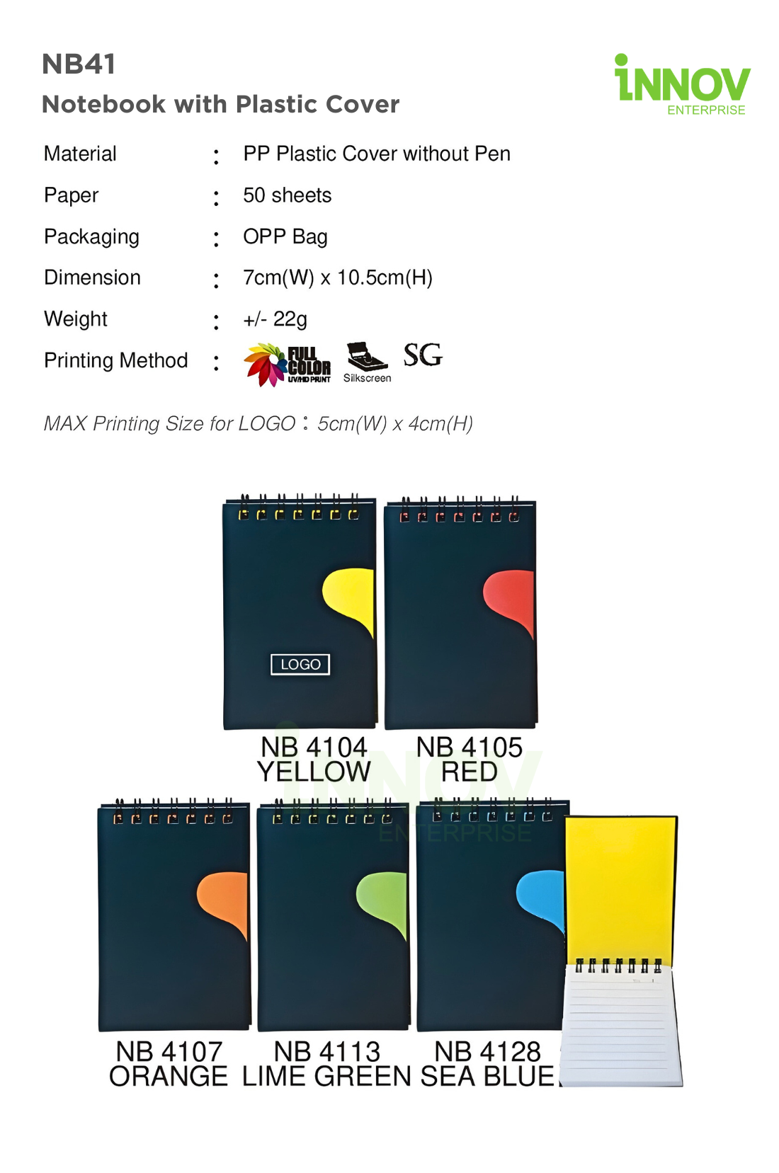 At Innov Enterprise, we provide professional branding services for the NB41 Notebook with Plastic Cover: