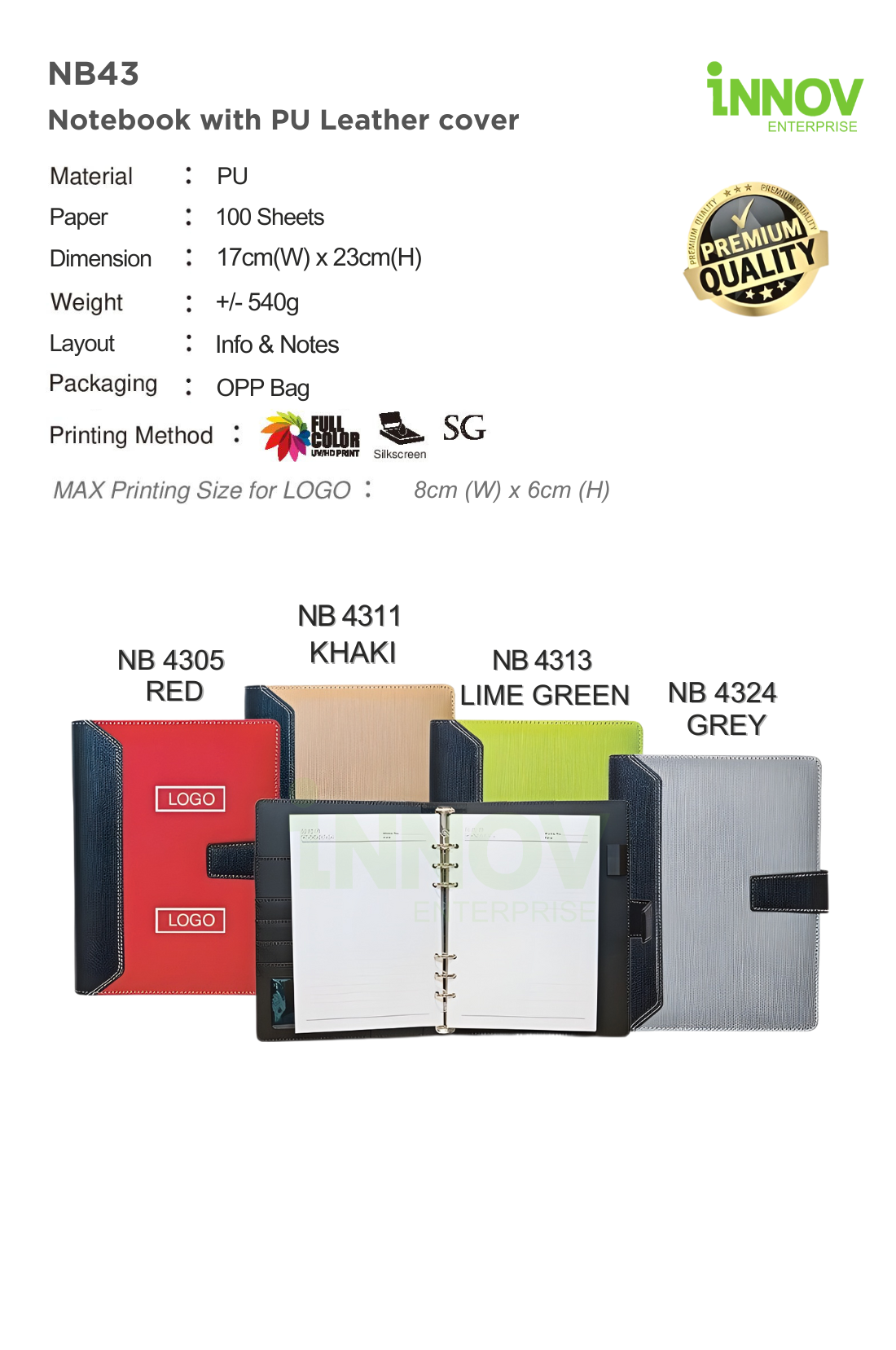At Innov Enterprise, we provide high-quality branding for the NB43 Notebook with PU Leather Cover: