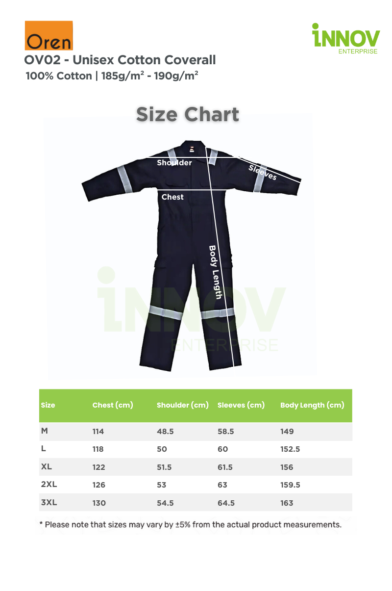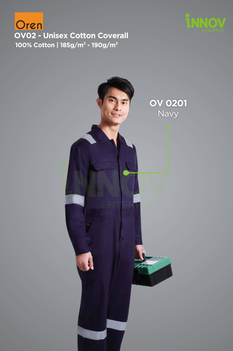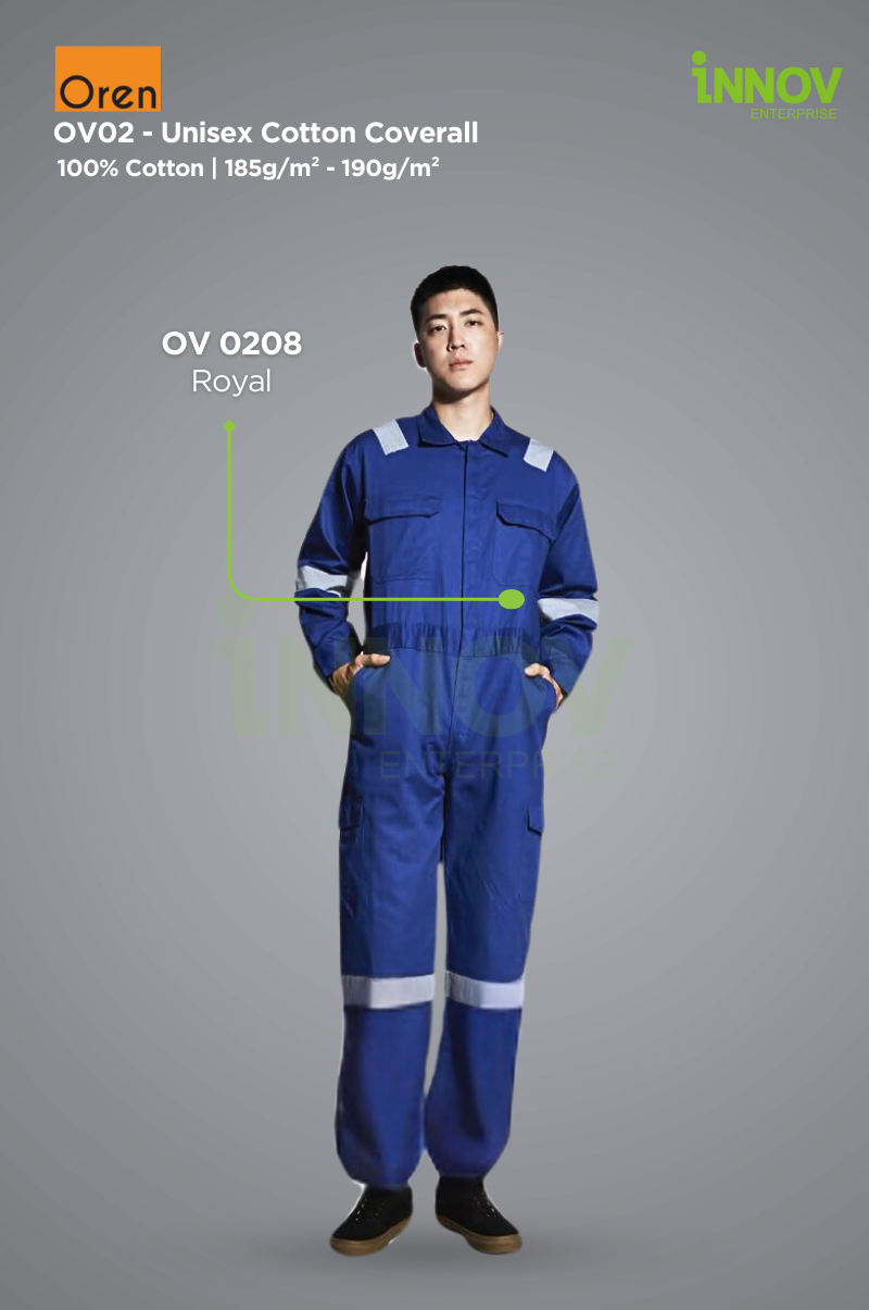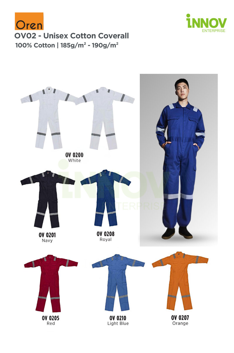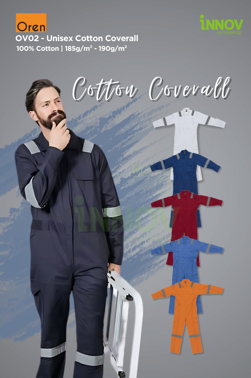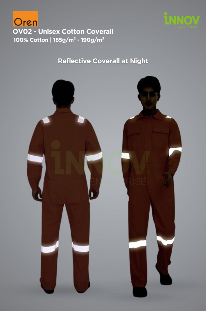 The OV02 – Unisex Cotton Coverall is the ultimate blend of comfort, safety, and durability, designed to meet the demands of professionals in various industries. Made from 100% high-quality cotton with a medium fabric weight of 185g/m² – 190g/m², this Reflective Coverall ensures breathability and flexibility while offering a structured look ideal for long working hours in both indoor and outdoor settings.