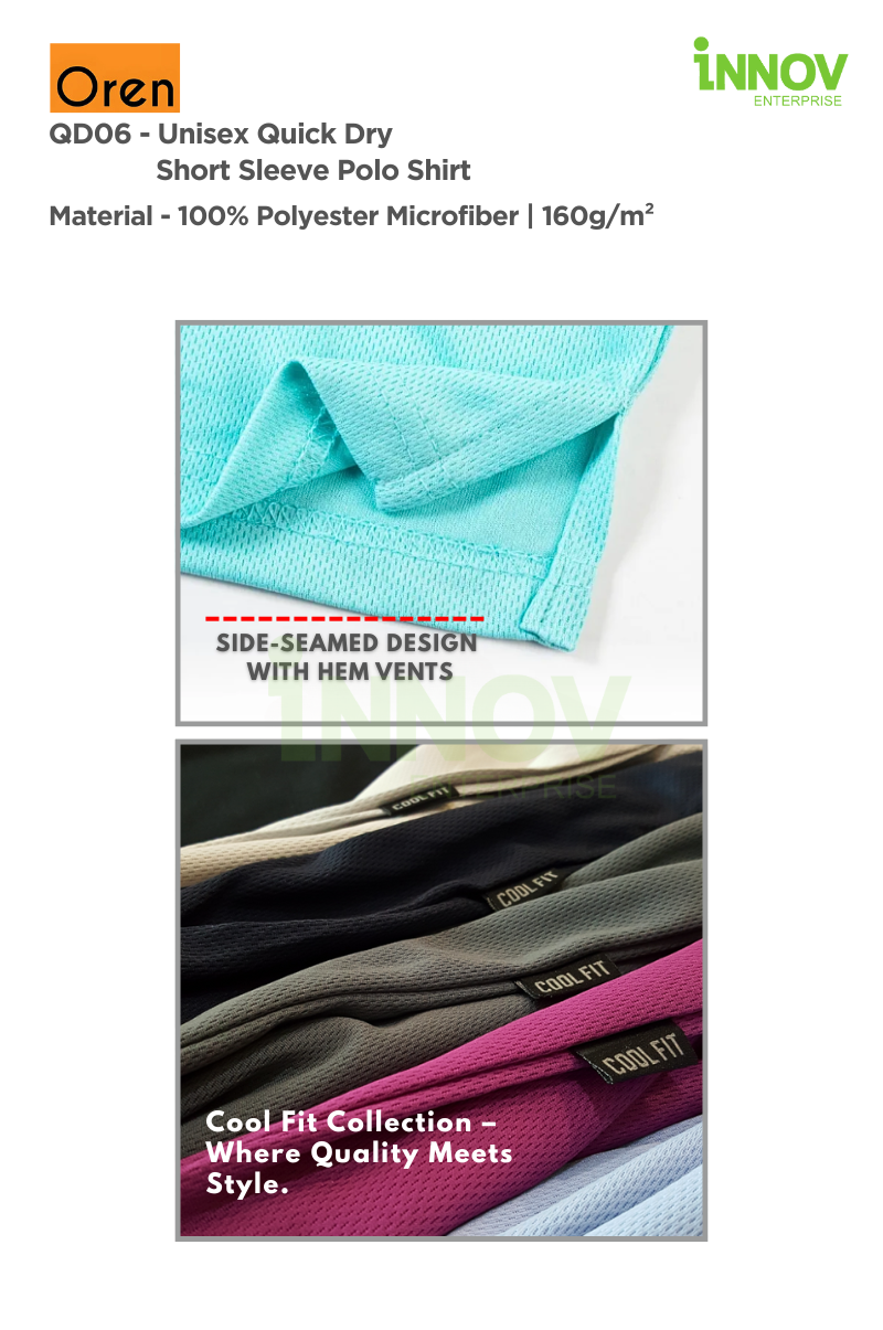 Inclusive sizes from 2XS–3XL, 5XL, and 7XL, this polo supports a wide variety of teams and organisations, while offering versatile branding through sublimation, silkscreen, heat transfer, and embroidery. Perfect for corporate uniforms, school programmes, promotional giveaways, and team wear, the QD06 is a premium solution that combines performance, comfort, and professional appeal.