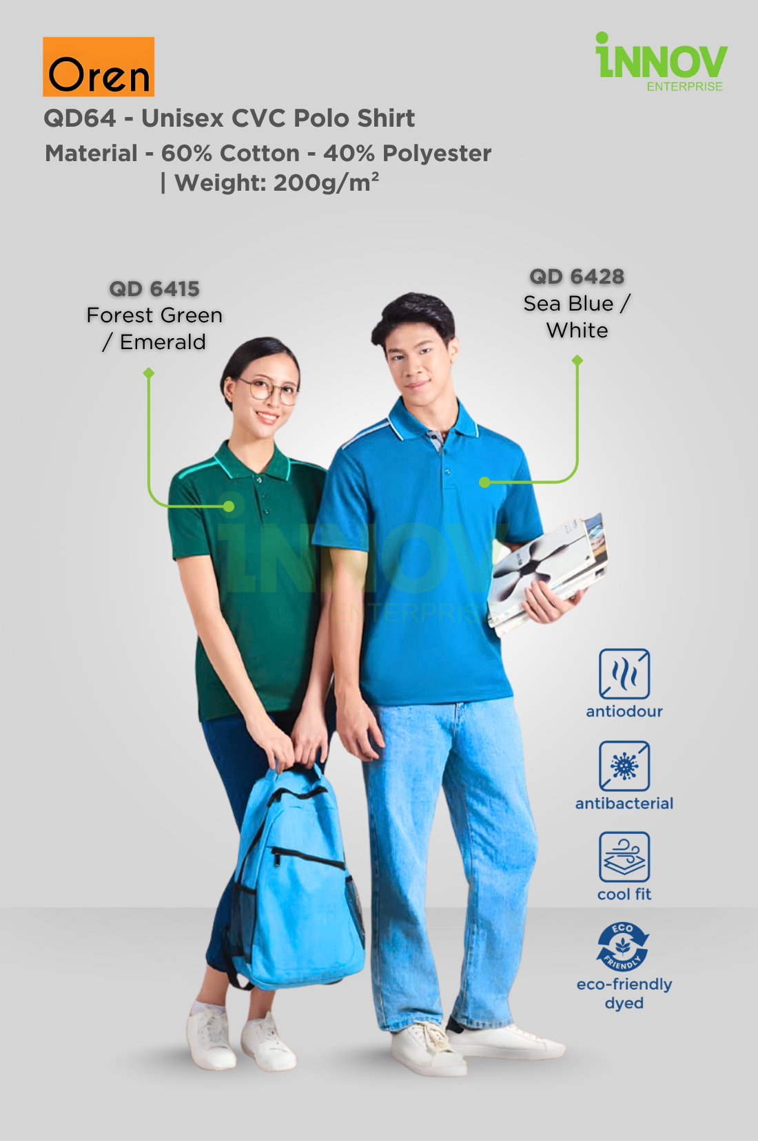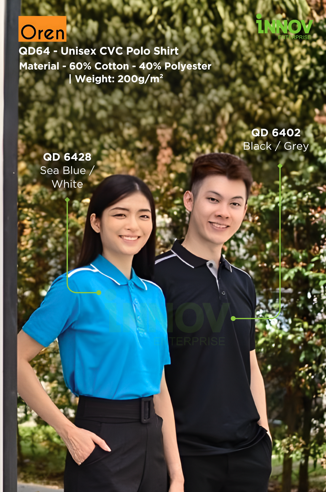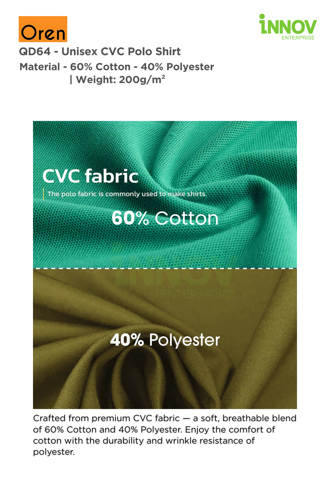 At Innov Enterprise, we offer a variety of branding solutions for your Unisex CVC Polo Shirt: