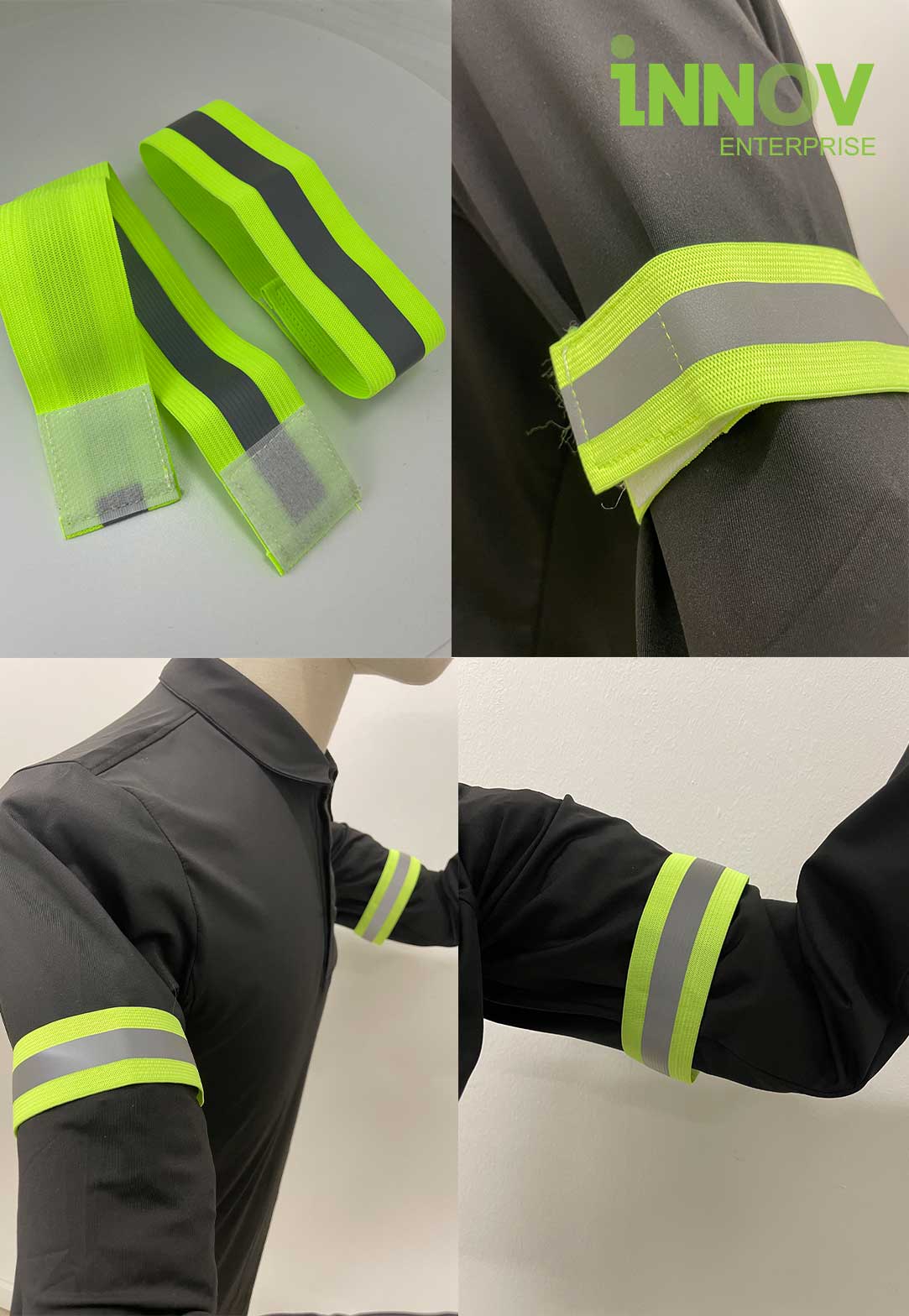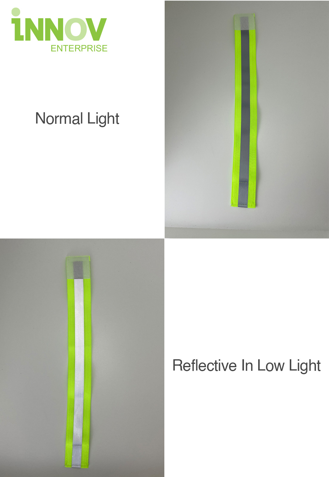 RSB02 series – Reflective Safety bands are made of high-quality elastic polyester has high visibility strong reflective single stripe on the luminous colored yellow-green elastic band that wraps the entire band provides you 360-degree reflectivity and visibility in low light or dark environment especially when you are engaging in indoor or outdoor sports activities such as cycling, riding, dancing, fishing, walking with pets, or even hanging on your pets neck, landscaping or gardening, roadside works, hillside, construction site, beach walks and games and any activities that protect you from harm or accidents.