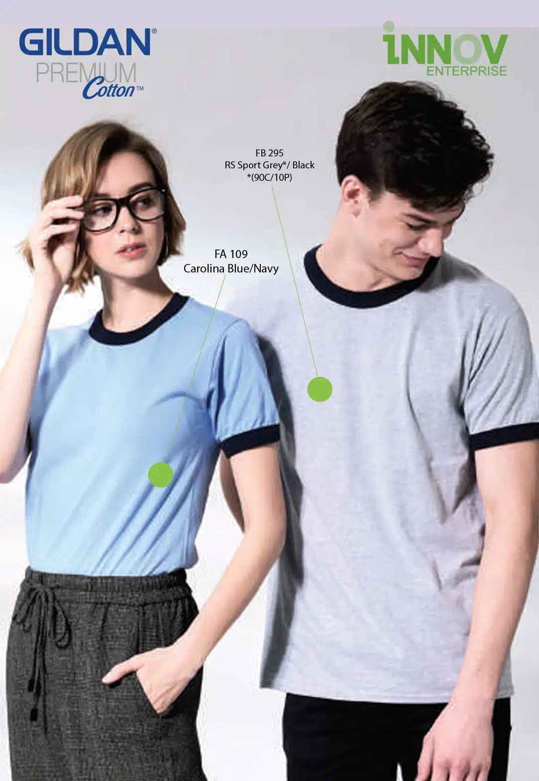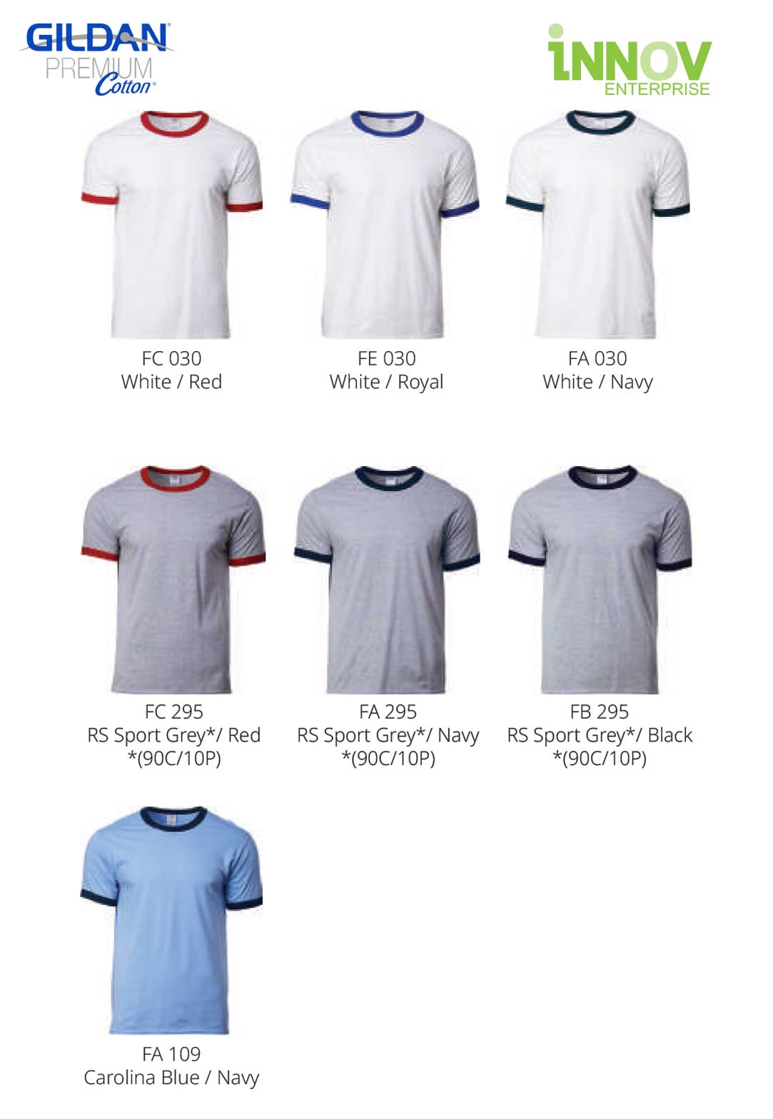 Create your own custom t-shirt design with this Gildan premium cotton ringer tee. It comes with 7 different color contrasting neck and sleeve bands from the t-shirt body for your selection.