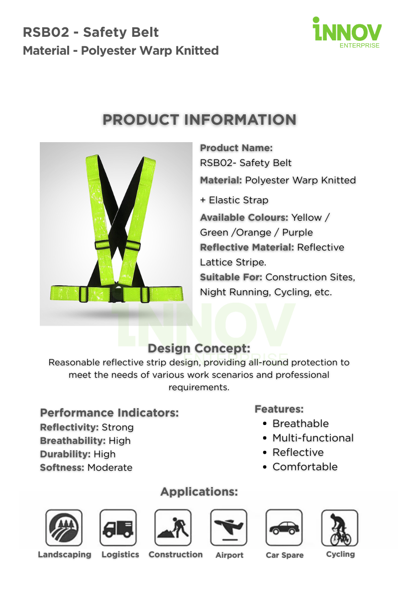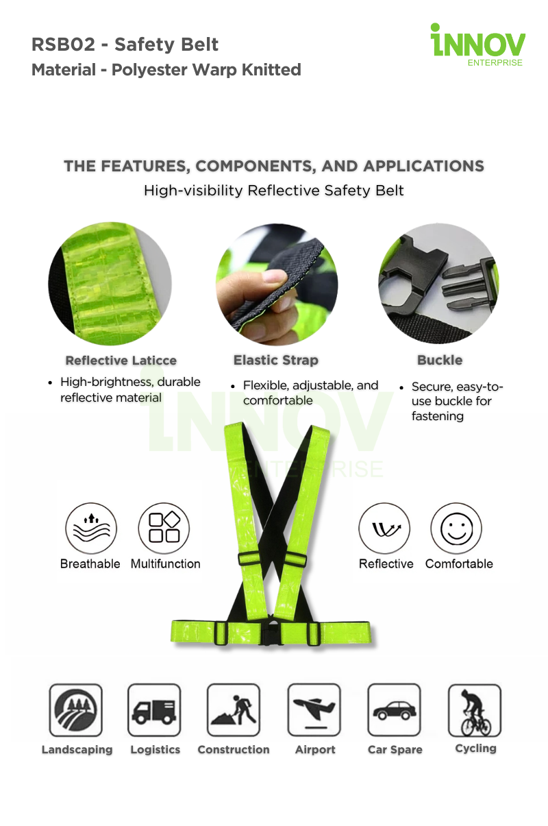 The RSB02 – Safety Belt delivers essential high-visibility protection with a lightweight, flexible design—perfect for professionals in dynamic environments. Crafted from durable polyester warp knitted fabric and enhanced with an elastic strap, this belt vest provides a secure and adjustable fit that suits a wide range of body types.