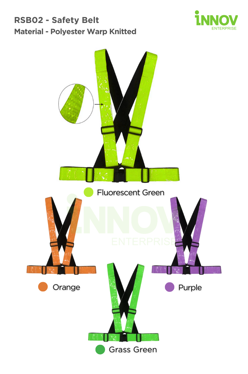 The RSB02 is available in four vibrant colours (Fluorescent Green, Orange, Grass Green, and Purple) to suit different work environments and branding needs. Designed as FREE SIZE — fully adjustable to comfortably fit a wide range of body types. Whether layered over uniforms or casual wear, this Safety Reflective Belt Vest is a cost-effective, versatile solution for improving personal visibility and team safety.