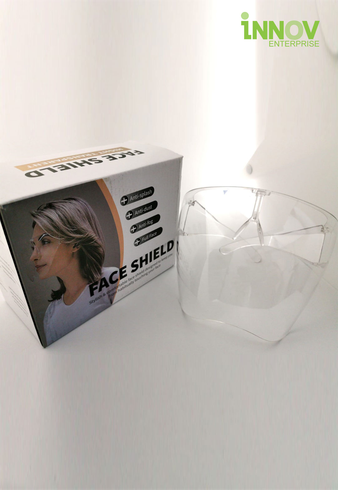 The full-face shield provides complete coverage of the face. It serves as a layer of protection for individuals that do not wear glasses as it shields your eyes from particles and water droplets.