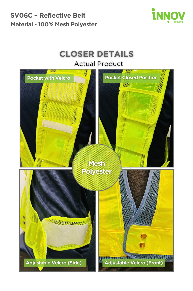 Available in 4 vibrant colours and adjustable free-size design (W: 58cm & L: 66cm) fits comfortably , the SV06C Reflective Belt combines durability, visibility, and user-focused design—making it the go-to choice for professional and personal safety needs.