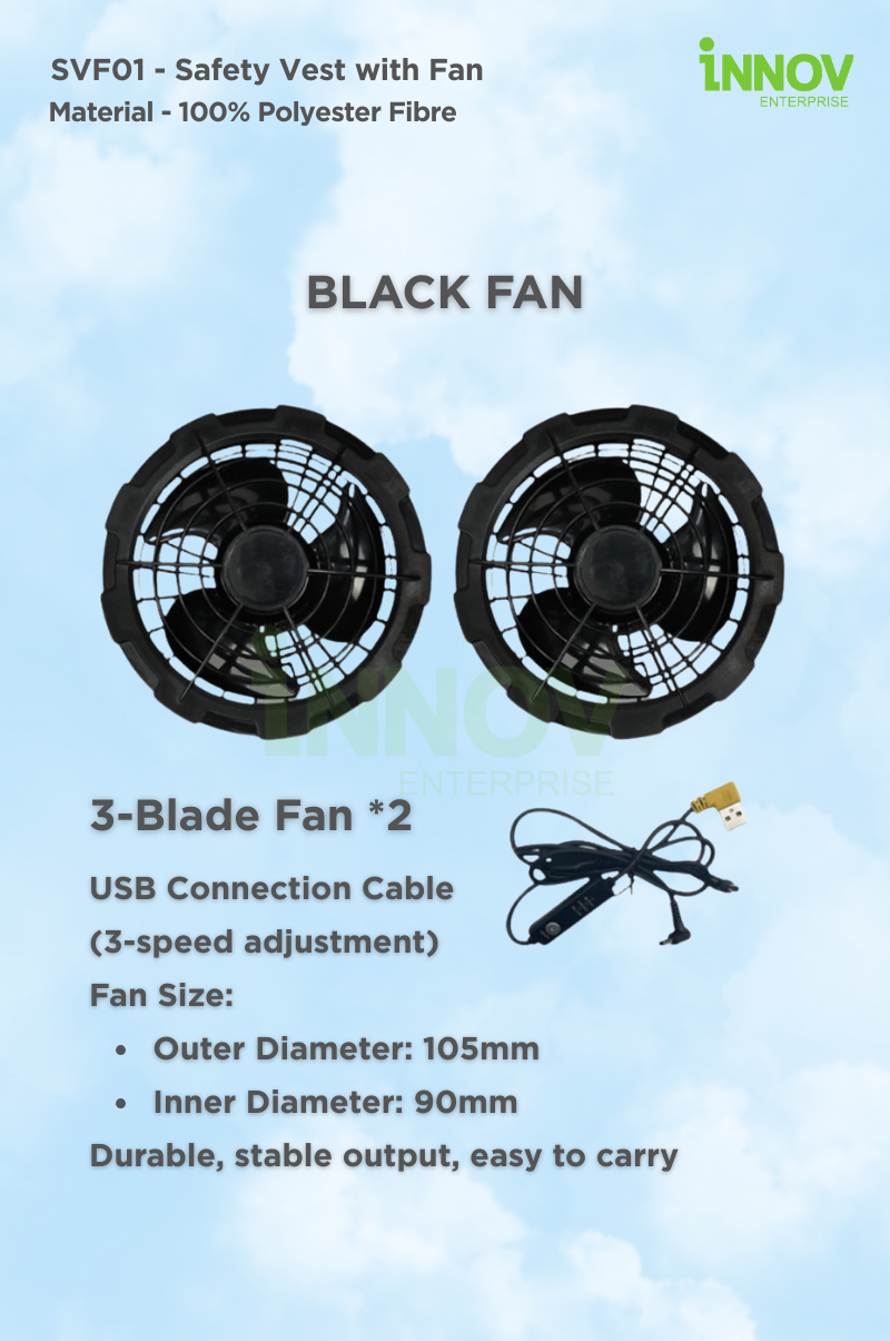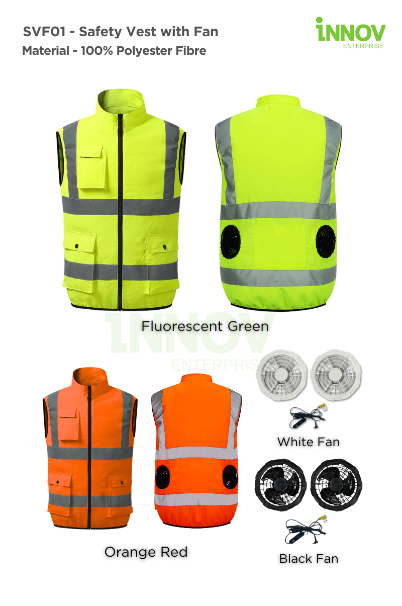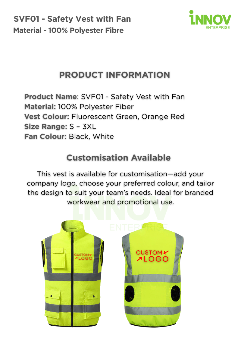 At Innov Enterprise, we help you customise your Safety Vest with Fan with: