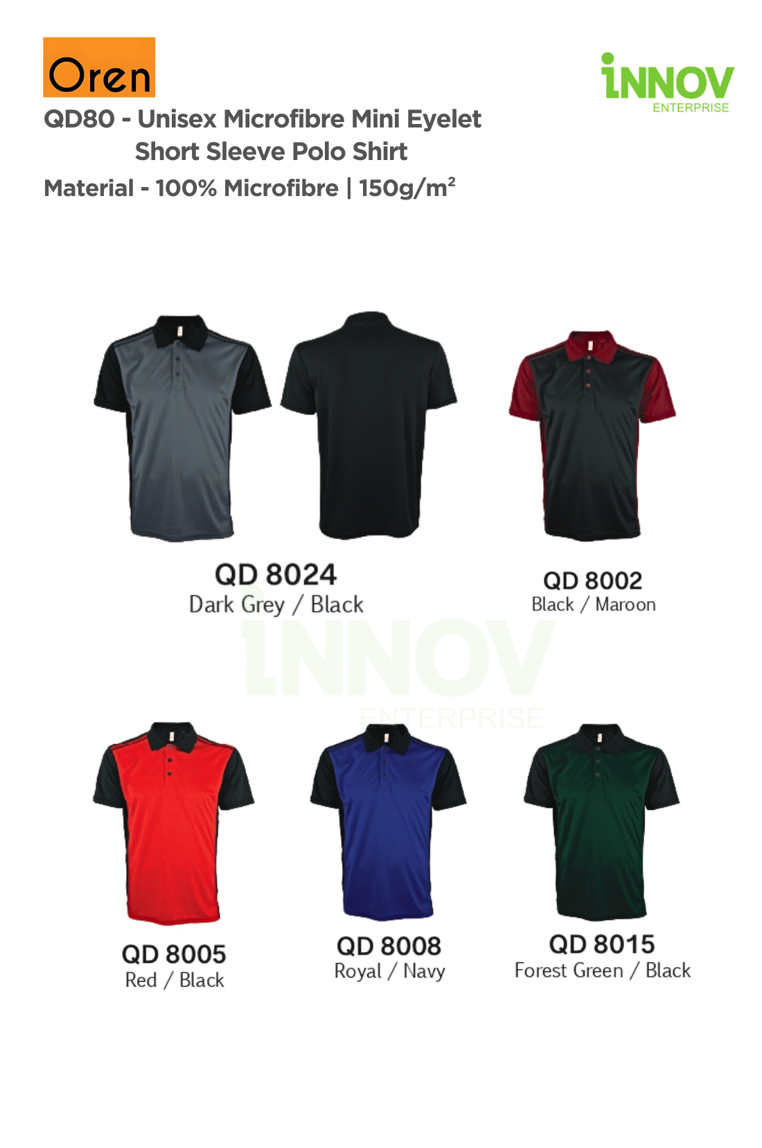QD80 UNISEX MICROFIBRE Mini Eyelet Polo Shirt