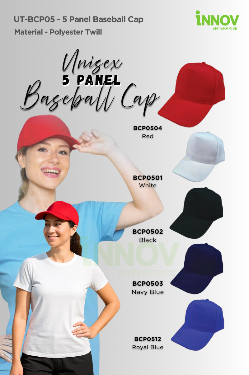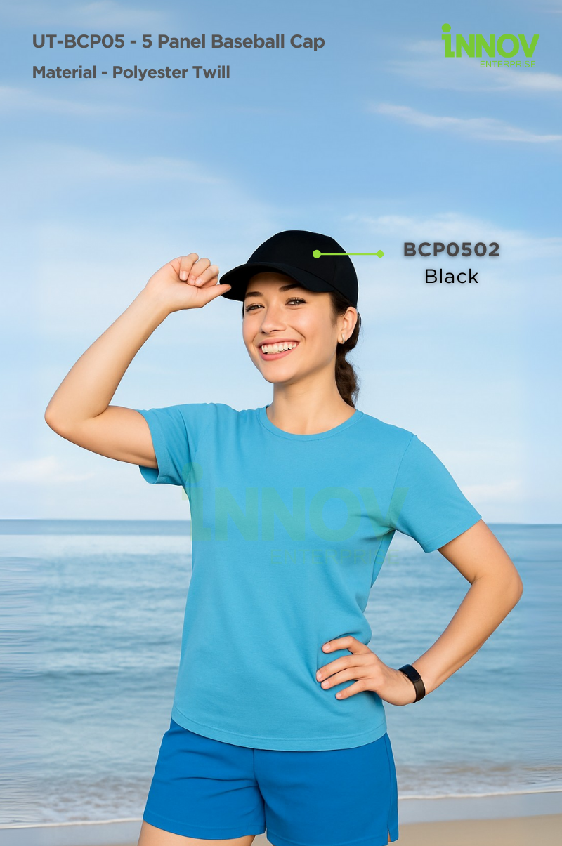 The UT-BCP05 – 5 Panel Baseball Cap is a stylish, functional, and durable headwear solution tailored for daily use, promotional campaigns, and branded uniforms. Crafted from premium polyester twill, this cap features a structured 5-panel construction with clean crown and visor stitching—offering a sleek, professional look that makes it perfect for 5 Panel Baseball Cap Printing.