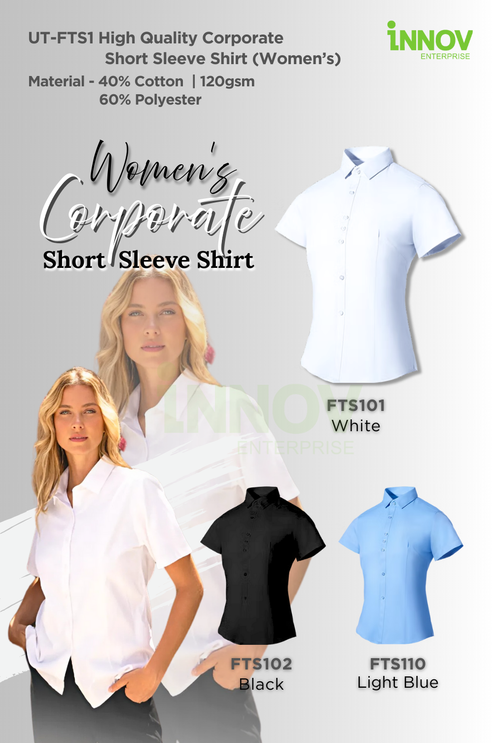 At Innov Enterprise, we specialise in transforming your Women’s Business Shirt into a branded corporate essential: