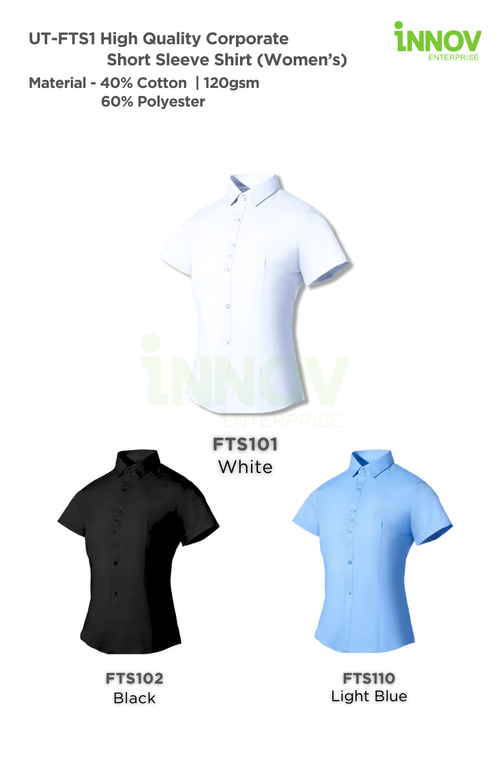 Available in classic 3 colours and sizes ranging from XS–3XL and 5XL (35–42), the UT-FTS1 provides a flexible solution for businesses seeking a versatile Women’s Business Shirt that blends sophistication with practicality.