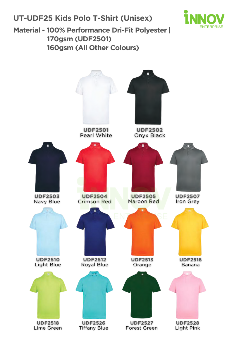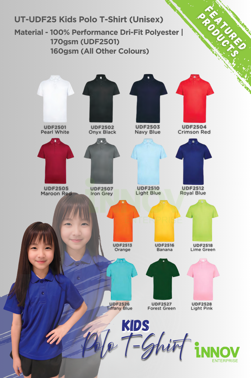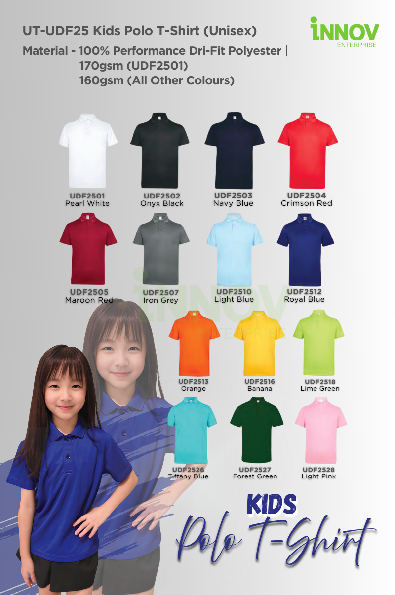 Order Now! Ready to customise your UT-UDF25 Kids Polo T-Shirt (Unisex)? Contact Innov Enterprise today for a free consultation and quotation, and let us help you bring your brand to life!
