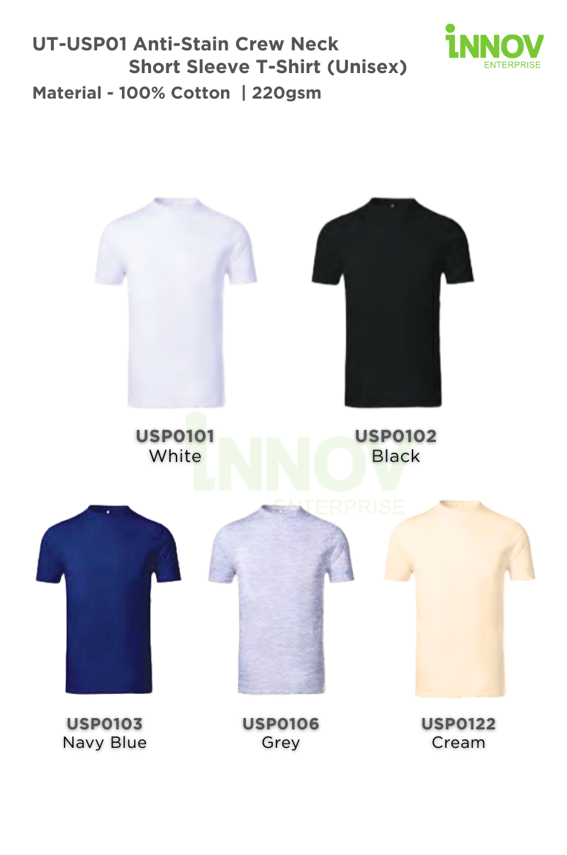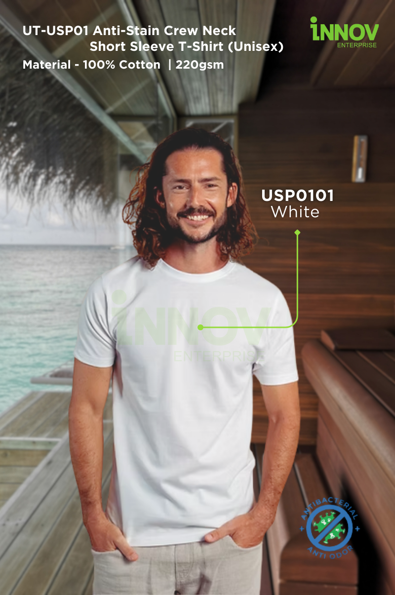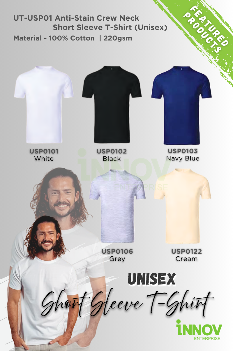 Enhance your UT-USP01 Anti-Stain Crew Neck Short Sleeve T-Shirt with company logos, event branding, team names, or personalised designs for Corporate uniforms, Event giveaways, Retail merchandise or Team or club apparel.