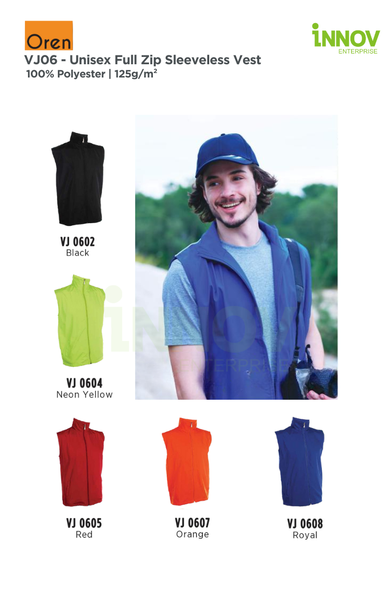 Available in five vibrant colours and unisex sizing from XS to 3XL, the VJ06 – Unisex Full Zip Sleeveless Vest is a versatile choice for corporate branding, sports teams, or everyday wear.