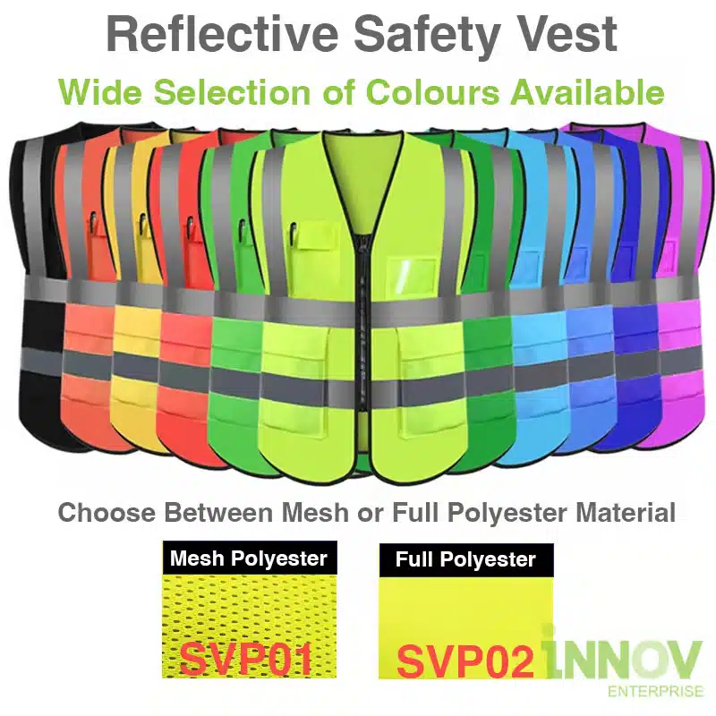The meaning of each colour may vary depending on the company’s internal safety protocols or project requirements. At Innov Enterprise, we offer safety vests in a wide range of colours and can help you customise by department, role, or event needs. Check out some of out other colours available for your selection